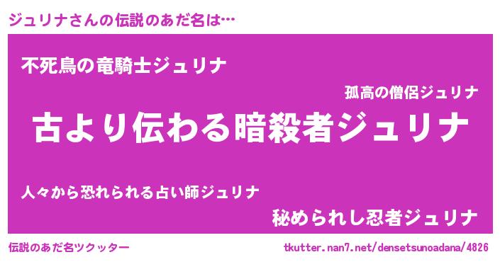 | ヒーロー風カッコイイあだ名 | 『ネオジュリナ』『スーパージュリナ』 |