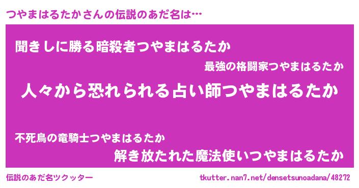 | ヒーロー風カッコイイあだ名 | 『正義の使者つやまはるたか』 |
