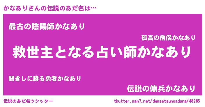 | ヒーロー風カッコイイあだ名 | 『天空の使者かなあり』『炎刃騎士カナ』 |
