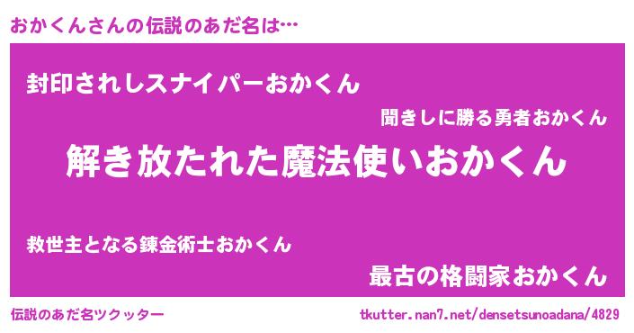 | ヒーロー風カッコイイあだ名 | 『幻影騎士オカ』『スーパーオカクン』 |