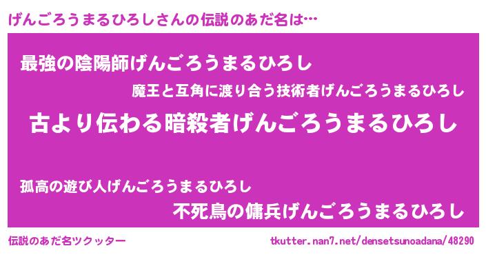 | 意味不明あだ名 | 『永久保存げんごろうまるひろし』 |