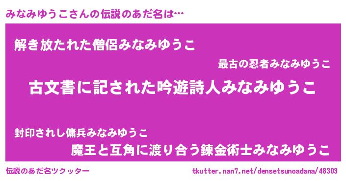 | 意味不明あだ名 | 『永久保存みなみゆうこ』 |