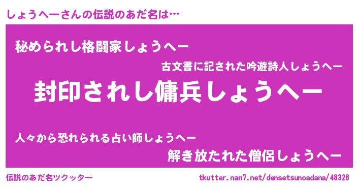 | 胡散臭い通販商品みたいなあだ名 | 『億万長者になれる水晶球…その名も「しょうへー」』 |