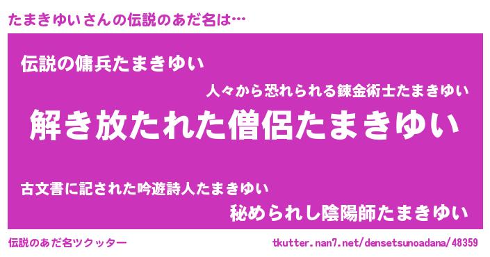 | ヒーロー風カッコイイあだ名 | 『仮面タマダー』『黄金騎士タマ』 |