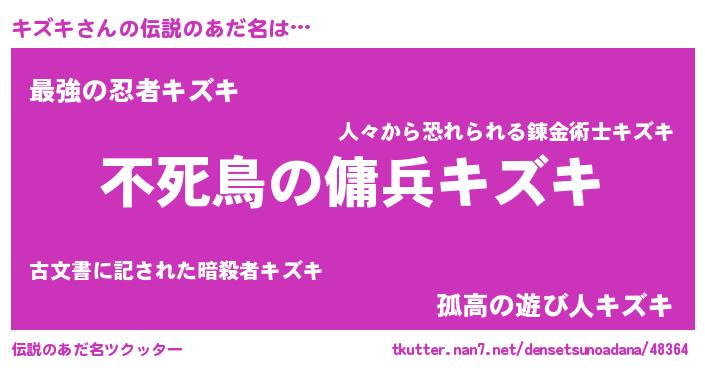 | ヒーロー風カッコイイあだ名 | 『スーパーキズキ』『サイバー戦士キズキ』 |