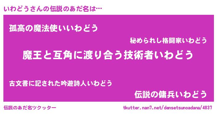 | ピコ太郎風あだ名 | 『イイ太郎』『イワ太郎』『イコ史郎』 |