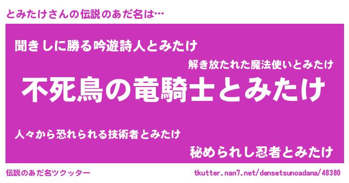 | 女子向けラノベタイトル風あだ名 | 『とみたけ姫と円卓の騎士』 |