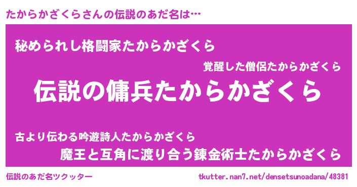 | 意味不明あだ名 | 『住所不定無職たからかざくら(50歳)』 |
