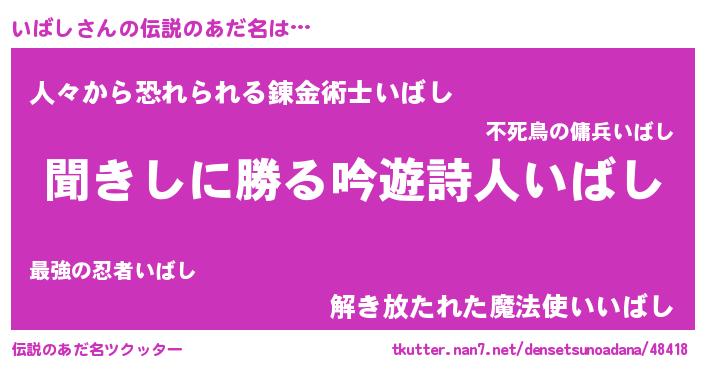 | 男性向けラノベタイトル風あだ名 | 『いばしという概念が存在しない退屈な世界 』 |