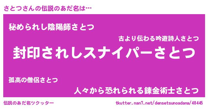 | 意味不明あだ名 | 『自称さとつ』『住所不定無職さとつ(93歳)』 |
