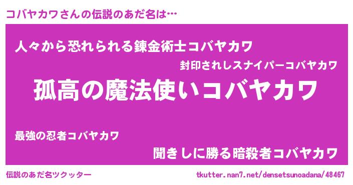 | ヘコむあだ名 | 『コバお』『コバヤカワ(笑)』 |