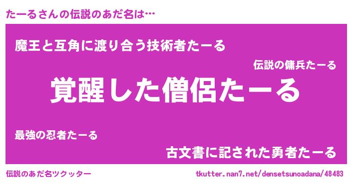 | 意味不明あだ名 | 『とにかく怪しいたーる』『自称たーる』 |