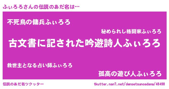 | 意味不明あだ名 | 『永久保存ふぃろろ』『自称ふぃろろ』 |