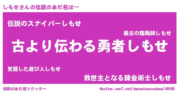 | 意味不明あだ名 | 『自称しもせ』『永久保存しもせ』 |