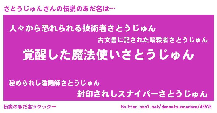 | 意味不明あだ名 | 『住所不定無職さとうじゅん(6歳)』 |