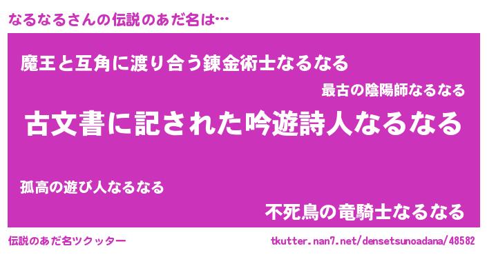 | 男性向けラノベタイトル風あだ名 | 『この素晴らしい世界になるなるを!』 |