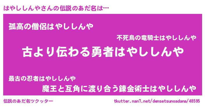| 胡散臭い通販商品みたいなあだ名 | 『来世でも幸せになれる水素水…その名も「はやししんや」』 |
