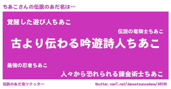 | 女子向けラノベタイトル風あだ名 | 『シンデレラちあこ家の靴箱館』 |