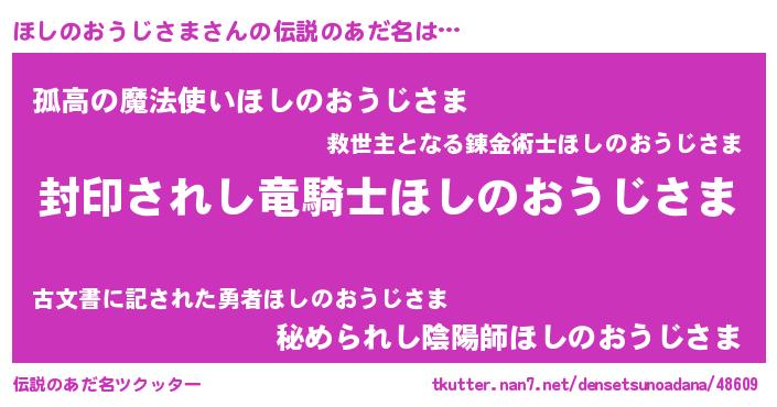 | 胡散臭い通販商品みたいなあだ名 | 『億万長者になれるブレスレット…その名も「ほしのおうじさま」』 |