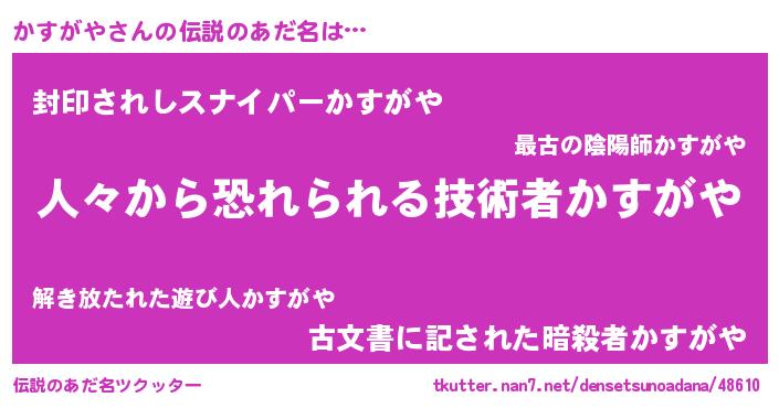 | 意味不明あだ名 | 『住所不定無職かすがや(4歳)』 |