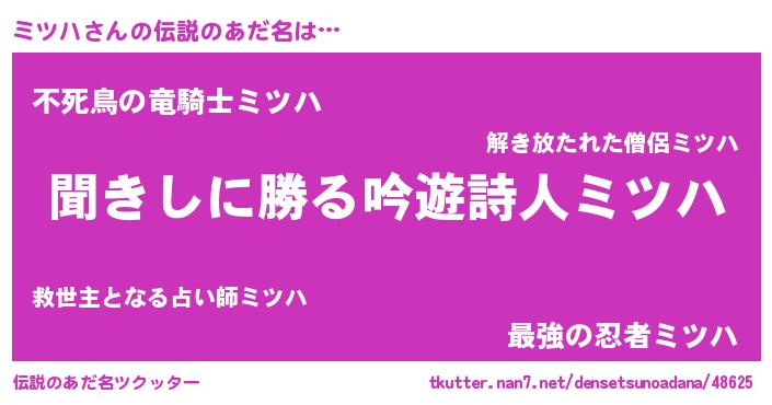 | ファンタジー風あだ名 | 『ミツディッシュ』『ミツフェル』 |
