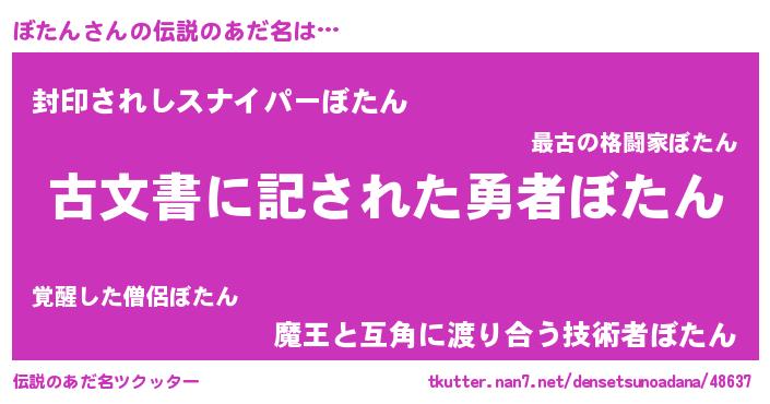 | ヘコむあだ名 | 『ぼたん(苦笑)』『ぼたもー』『豆乳』 |