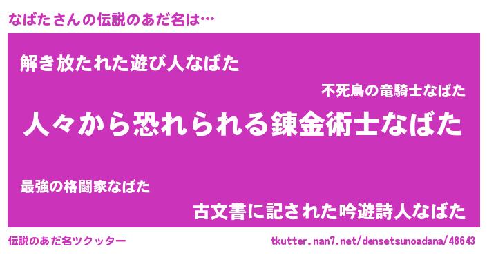 | 女子向けラノベタイトル風あだ名 | 『なばたなんてお断りですっ。』 |