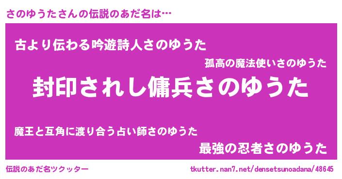 | 意味不明あだ名 | 『住所不定無職さのゆうた(56歳)』 |