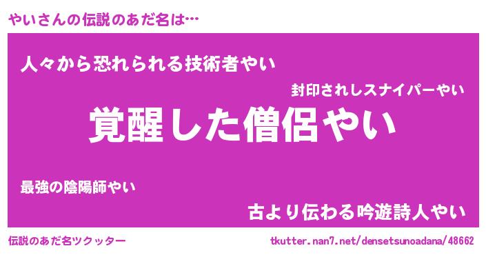| 意味不明あだ名 | 『とにかく怪しいやい』『永久保存やい』 |