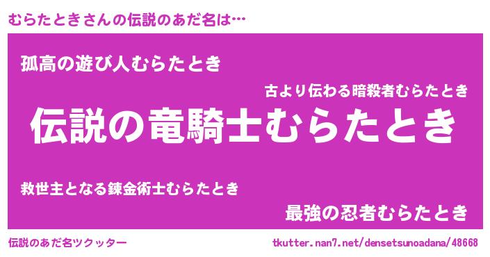 | 意味不明あだ名 | 『ペロリンむらたとき』『自称むらたとき』 |