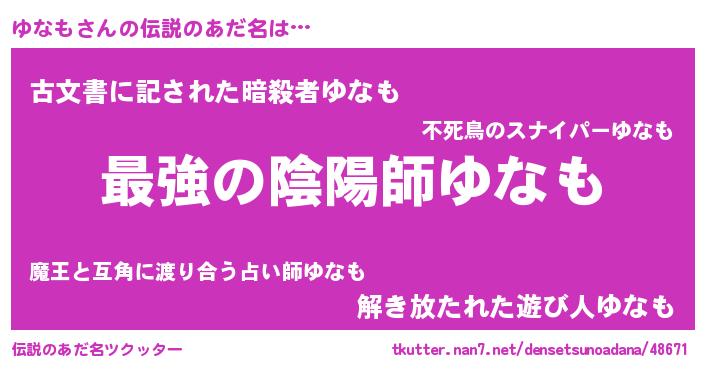 | ファンタジー風あだ名 | 『エターナルユナモー』『ユナディッシュ』 |