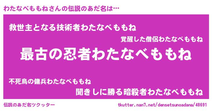 | 胡散臭い通販商品みたいなあだ名 | 『世界が平和になる高級そうな壺…その名も「わたなべももね」』 |