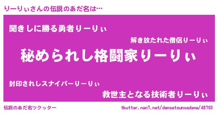| 男性向けラノベタイトル風あだ名 | 『やはりりーりぃの青春ラブコメはまちがっている 』 |