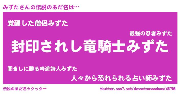 | ヒーロー風カッコイイあだ名 | 『スーパーミズタ』『ウルトラ戦士ミズタ』 |