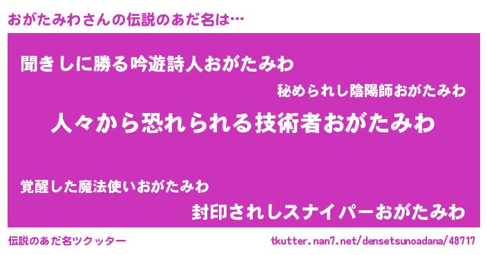 | ヒーロー風カッコイイあだ名 | 『正義の使者おがたみわ』 |