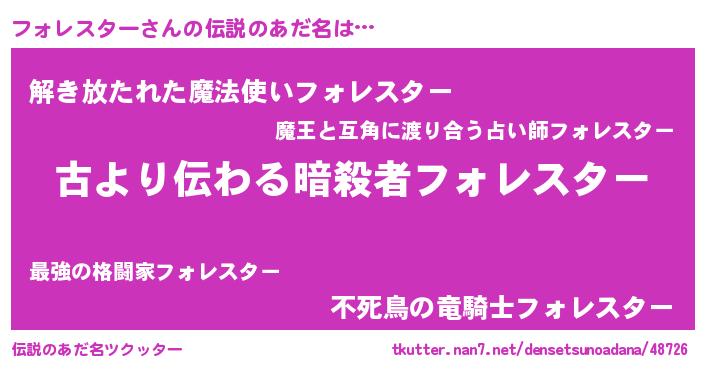 | ヒーロー風カッコイイあだ名 | 『ネオフォレスター』『幻影騎士フォ』 |