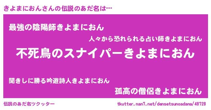 | 胡散臭い通販商品みたいなあだ名 | 『モテモテ間違いなし霊験あらたかなお札…その名も「きよまにおん」』 |