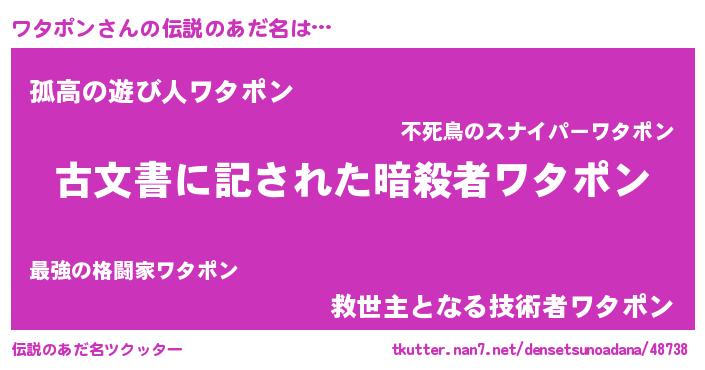 | 意味不明あだ名 | 『住所不定無職ワタポン(43歳)』 |