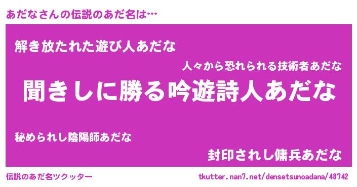 | 男性向けラノベタイトル風あだ名 | 『アダナスレイヤー』 |