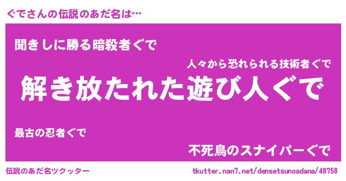 | ヒーロー風カッコイイあだ名 | 『魔戒騎士グデ』『ウルトラ戦士グデ』 |