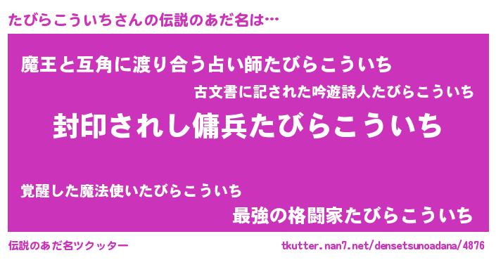 | ヒーロー風カッコイイあだ名 | 『スーパータビラコウイチ』 |