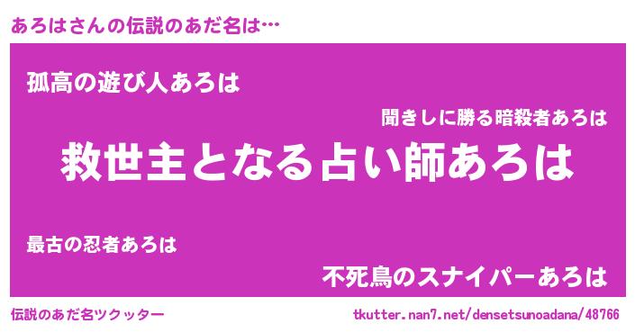 | ヒーロー風カッコイイあだ名 | 『仮面アロダー』『正義の使者あろは』 |