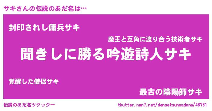 | ファンタジー風あだ名 | 『サキディッシュ』『ゼサキトゥ』 |