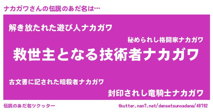 | ヒーロー風カッコイイあだ名 | 『天空の使者ナカガワ』『仮面ナカダー』 |