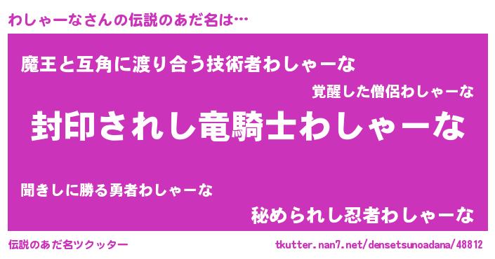 | 胡散臭い通販商品みたいなあだ名 | 『億万長者になれるブレスレット…その名も「わしゃーな」』 |