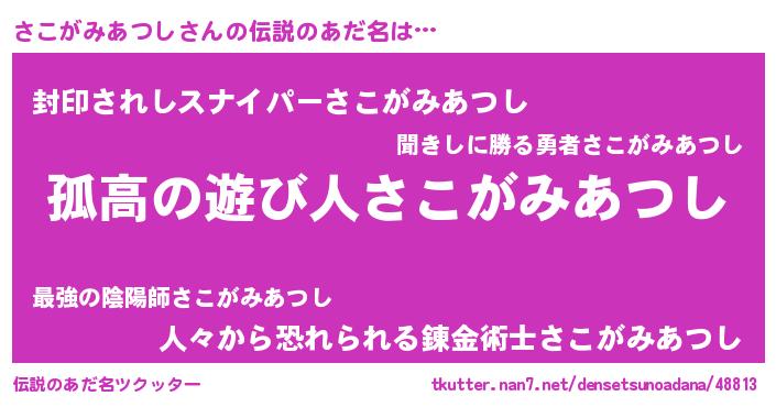 | 女子向けラノベタイトル風あだ名 | 『さこがみあつしは平凡を望む』 |