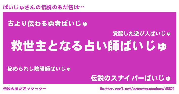 | ヒーロー風カッコイイあだ名 | 『慈愛の使者ばいじゅ』『ネオバイジュ』 |