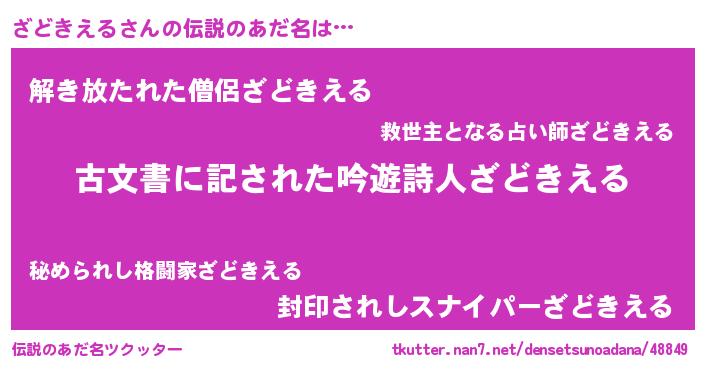 | 意味不明あだ名 | 『自称ざどきえる』『永久保存ざどきえる』 |