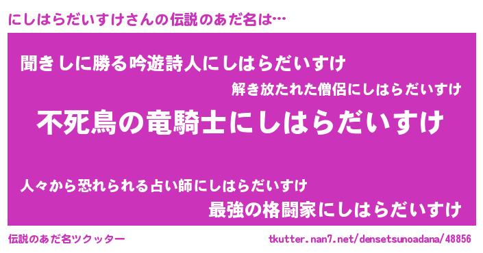 | ヒーロー風カッコイイあだ名 | 『スーパーニシハラダイスケ』 |