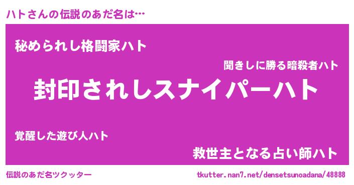 | ヒーロー風カッコイイあだ名 | 『スーパーハト』『ウルトラハトマン』 |